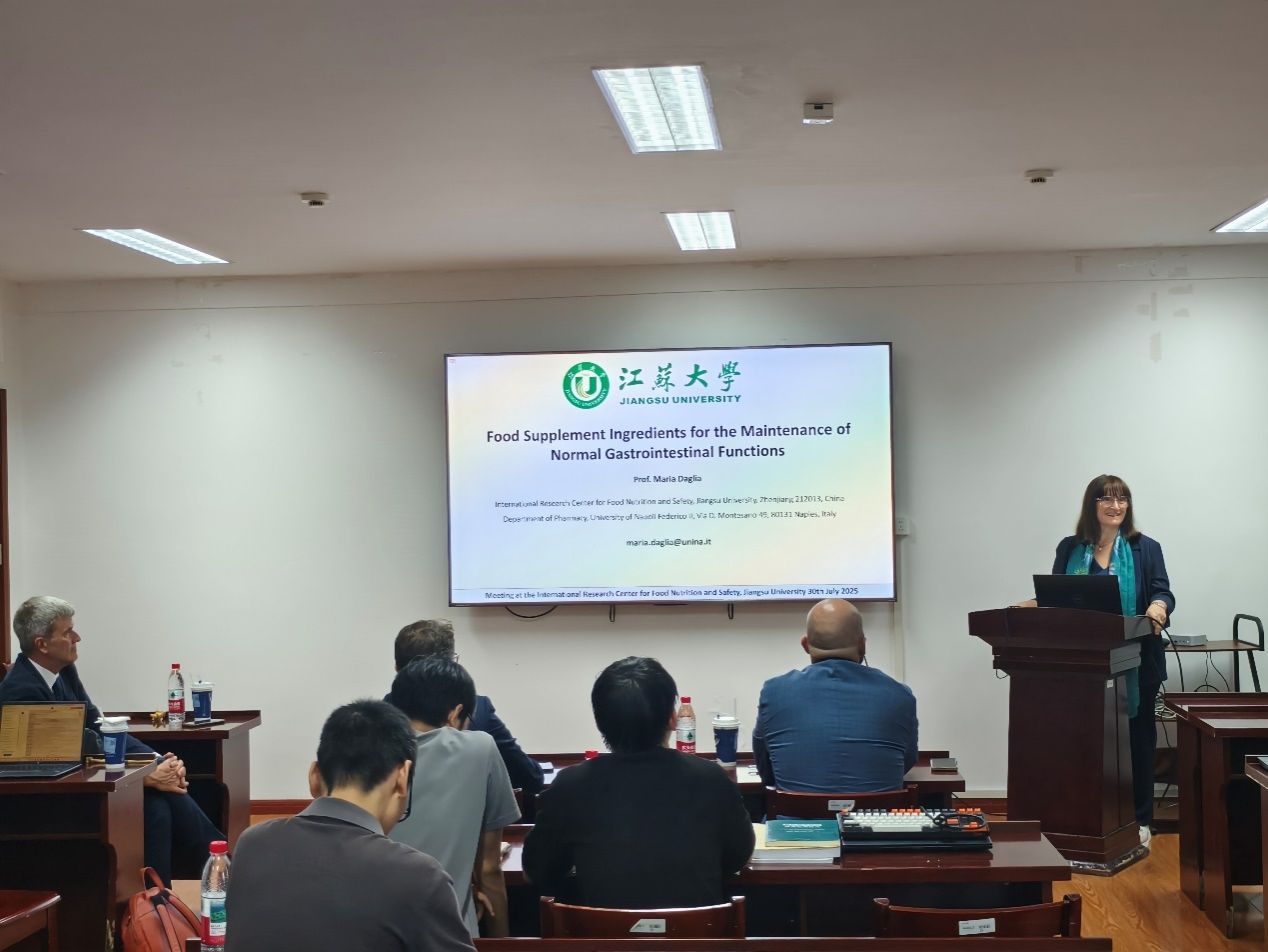 On July 30, 2025, Professor Maria Daglia from the University of Naples Federico II, Italy, was invited to deliver an academic lecture titled “The Key Role of Dietary Supplements in Maintaining Gastrointestinal Function” at the School of Food and Biological Engineering, held in Wenhua Building.