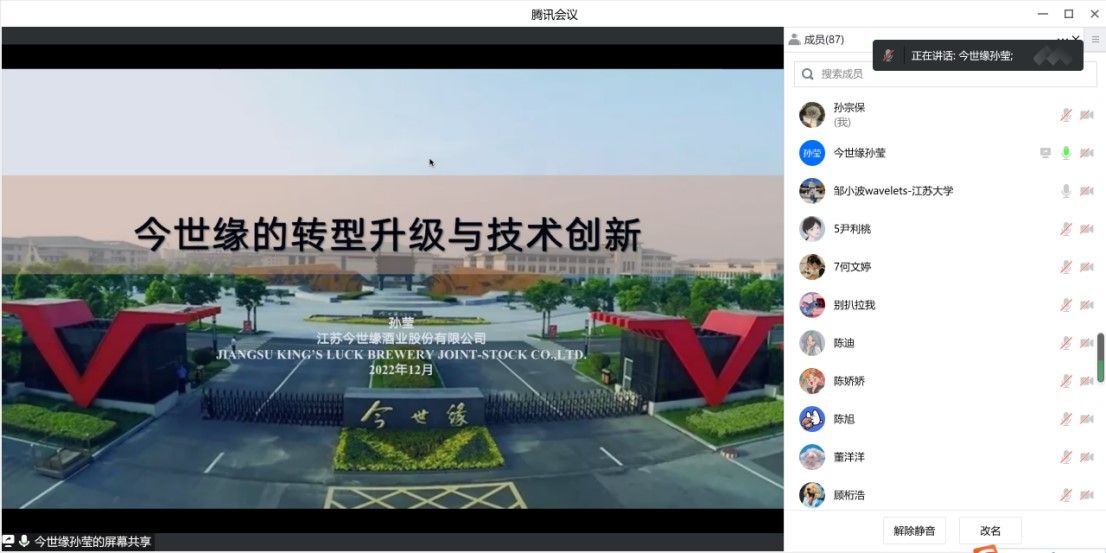 近日,由bat365正版唯一官网举办的“产业教授进校园活动”顺利举行,本次会议邀请了江苏省产业教授、江苏今世缘酒业股份有限公司勾储中心孙莹主任在线上为同学们做了“今世缘的转型升级与技术创新”的专题报告。bat365正版唯一官网邹小波院长主持会议,bat365正版唯一官网100余名师生线上参与学习。