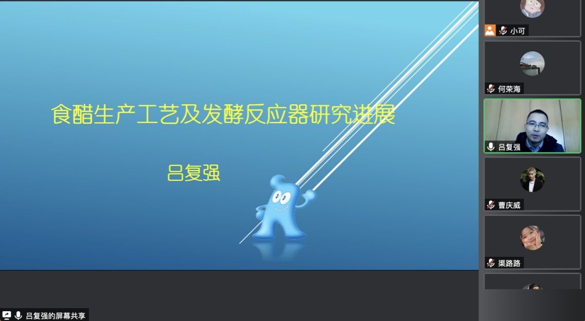 近日,由bat365正版唯一官网举办的“产业教授进校园活动”顺利举行,本次会议邀请江苏省产业教授、江苏恒顺醋业股份有限公司企业管理部部长吕复强做 “食醋生产工艺及发酵反应器研究进展”的专题报告,报告通过腾讯会议直播。食品物理加工研究院常务副院长何荣海教授主持会议,bat365正版唯一官网100余名师生线上参与学习。