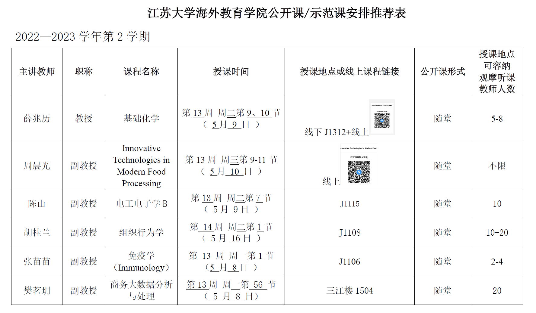 为响应海外教育学院(以下简称海院)号召,促进学院教师全英文教学能力与水平的提升,近期bat365正版唯一官网动员、组织教师在线上或线下观摩海院英文公开课。海院英文公开课安排如下图所示: