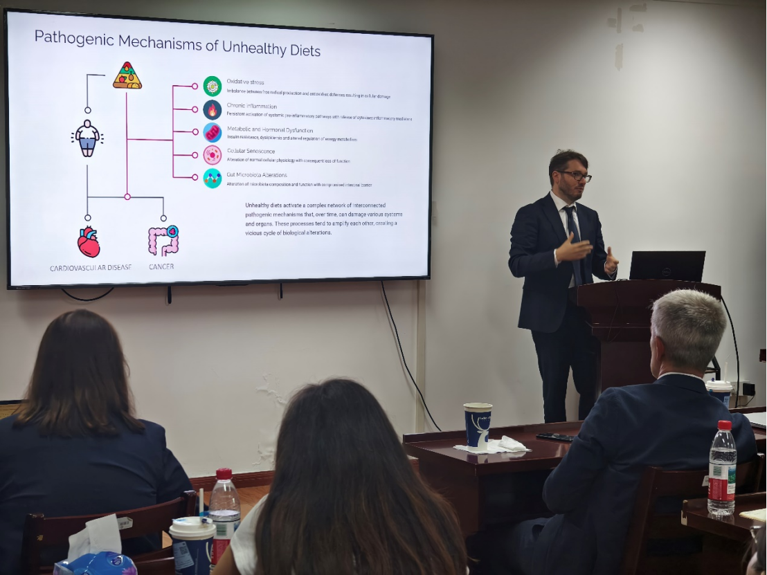 2025年7月30日,意大利卡塔尼亚大学(University of Catania)人类营养学教授、欧洲公共卫生协会食品与营养部门主席Giuseppe Grosso博士应邀作题为“膳食多酚与大脑健康”的学术报告。bat365正版唯一官网师生代表参加了此次报告会。
